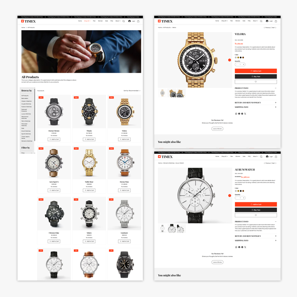 Luxurious Design: Features a sleek, modern aesthetic tailored for premium watch retail, with stunning visuals to highlight your timepieces.